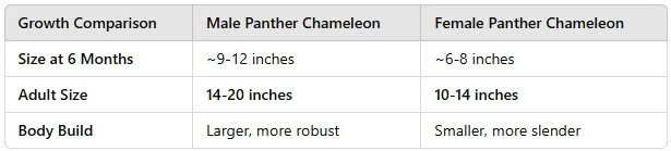 🐾 Pro Tip: If your Panther Chameleon starts developing deep blues, reds, and high contrast bars, it’s probably a male. If it stays soft and neutral, you likely have a female.